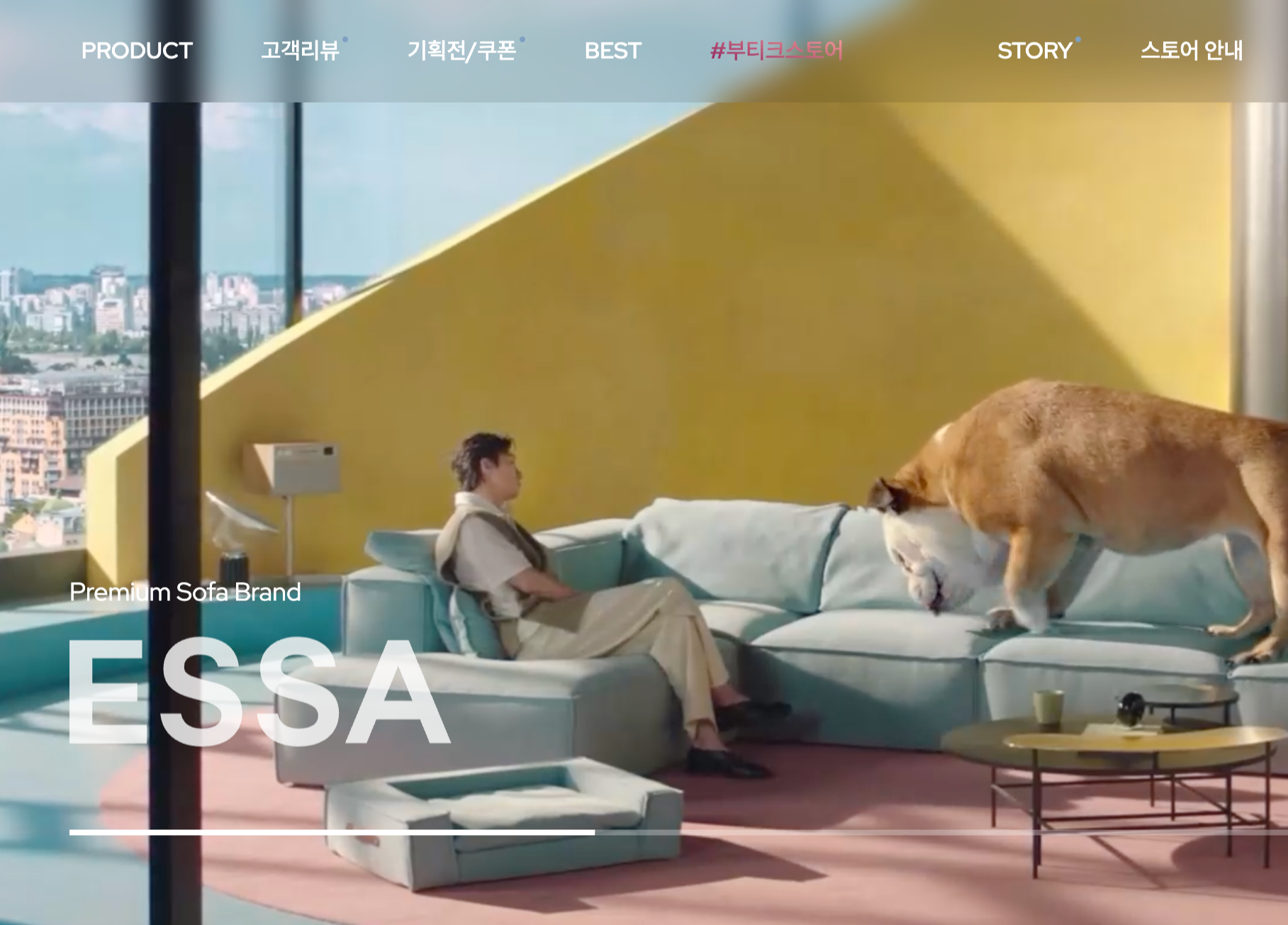 지금 보시고 있는 상단 이미지는 국내의 유명 가구 브랜드 '에싸 소파'의 공식 홈페이지 메인창 입니다.