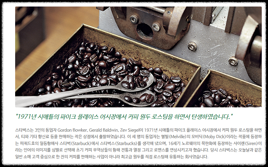 몇 십 년 후 어마어마한 기업으로 자리매김한 스타벅스의 탄생일화가 생각보다 무척이나 간단하죠?
