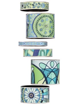 실크 스카프에서 차용한 모티프를 19세기부터 내려오는 전통 애나멜 공법으로 표현하고 너비 또한 다양하게 선보였습니다.
