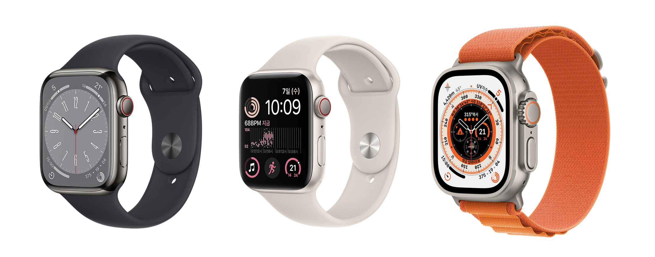 2014년도에 나온 애플워치 1세대부터 시작하여 애플워치의 세대가 꾸준히 나왔으며 이후 2020년에 나온 보급형 애플워치 SE와 2022년에 나온 애플워치 울트라 버전이 있습니다