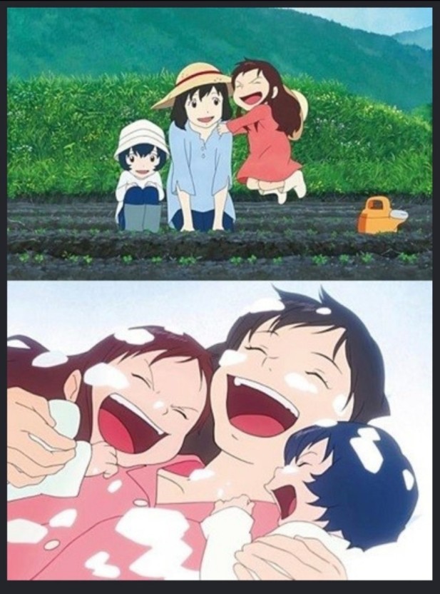 하나, 아메, 유키가 산에서 눈을 타고 눈위에서 누워서 노는 장면은 정말 가슴이 뻥 뚫리는 느낌을 받았다.