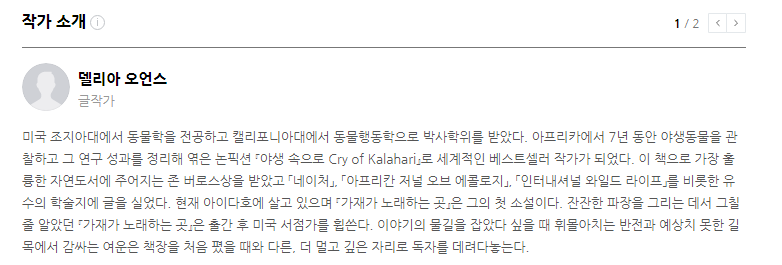 소설은 로맨스가 가미되어 있는 추리 소설 느낌을 보여 주고 있고, 다양한 생물들도 등장합니다. 실제로 작가는 동물학 박사이며 아프리카에서 7년이라는 시간을 보낸 적이 있다고 하죠. 어딘가 있을 법한 서사와 인물들, 그리고 지식들은 이야기를 더 생생하게 만듭니다. 넷플릭스 영화로도 제작된 이 소설은, 몰입도가 굉장히 높죠.