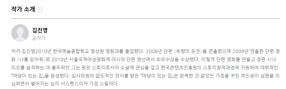 오늘은 강렬한 신인의 강렬한 데뷔작, <마당이 있는 집>의 줄거리를 소개해 드리려고 합니다. 드라마로도 제작되어 큰 사랑을 받은 만큼 한 번쯤 원작을 읽어보시는 것도 좋을 것 같습니다.