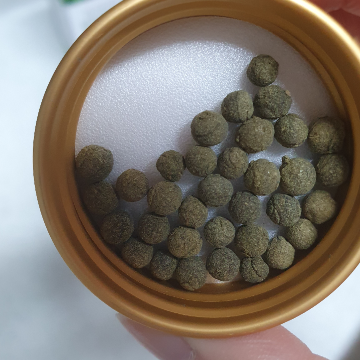 다른 방부제나 보존제도 들어가지 않고오로지 국내산 보리새싹 100%로 뭉친 환이니안심하고 먹을 수 있겠지요 ㅎㅎ이렇게 열어보니향은 약간 녹차 비슷한 향이 나더라고요~~심하진 않았어요. ㅎㅎ