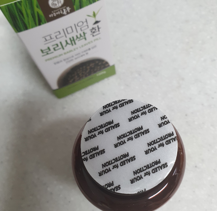 다른 방부제나 보존제도 들어가지 않고오로지 국내산 보리새싹 100%로 뭉친 환이니안심하고 먹을 수 있겠지요 ㅎㅎ이렇게 열어보니향은 약간 녹차 비슷한 향이 나더라고요~~심하진 않았어요. ㅎㅎ