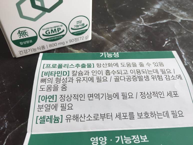 시간에 관계없이하루에 한번 3정씩 물과 함께먹으면 되는데 정재형태로되어있다 보니 그렇어요..이런한 제품들이 먹을 때 마다번거로웠다면 잘 챙겨 먹지못했을 것 같은데요.그린 프로폴리스는 그런걱정을 덜어주더군요.이러한 그린 프로폴리스 덕분에지금은 활기차게 하루를보내는 것 같어요..