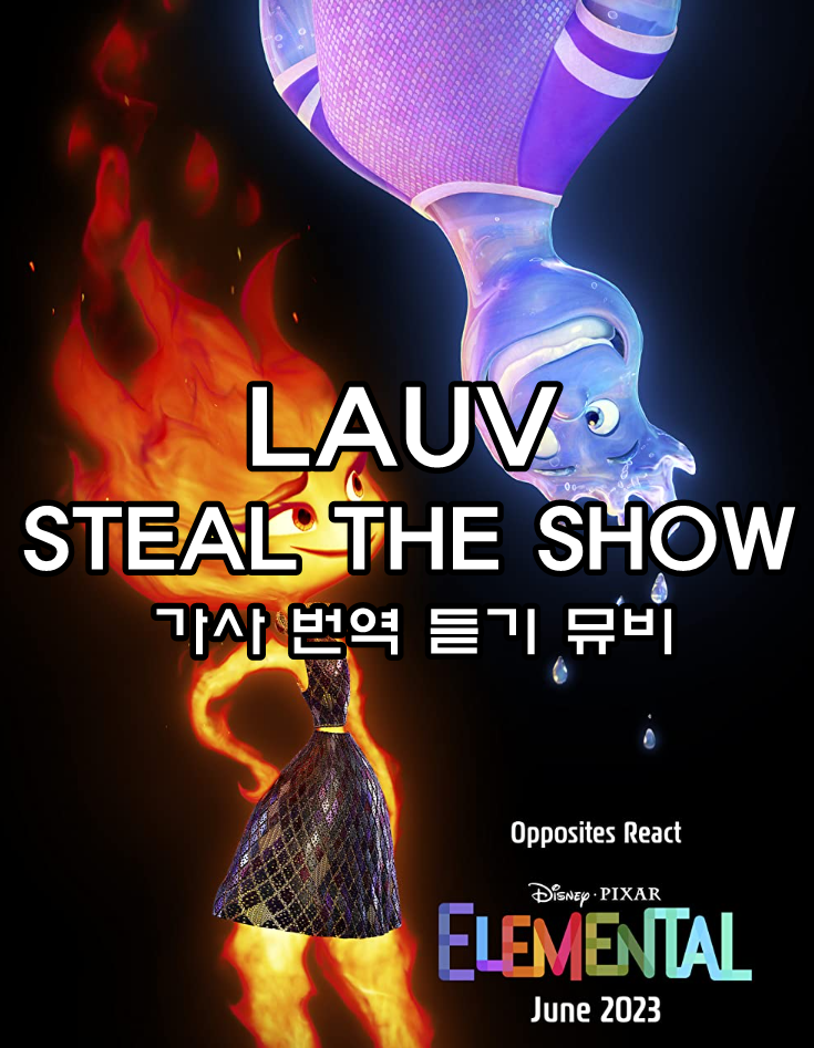 LAUV(라우브) 특유의 경쾌하고 단순한 사운드가 그대로 투과된 음악인 것 같아 좀 더 청량하게 들린 것 같아요. 엘리멘탈은 보지 않으셨지만, LAUV(라우브)의 OST STEAL THE SHOW를 먼저 알게 되셨다면, 얼른 엘리멘탈도 관람해 보세요. 주제가 참신하여 재밌고, 감동적인 부분도 있어 애니메이션이 여러분의 마음을 따뜻하게 만들어줄 거예요.